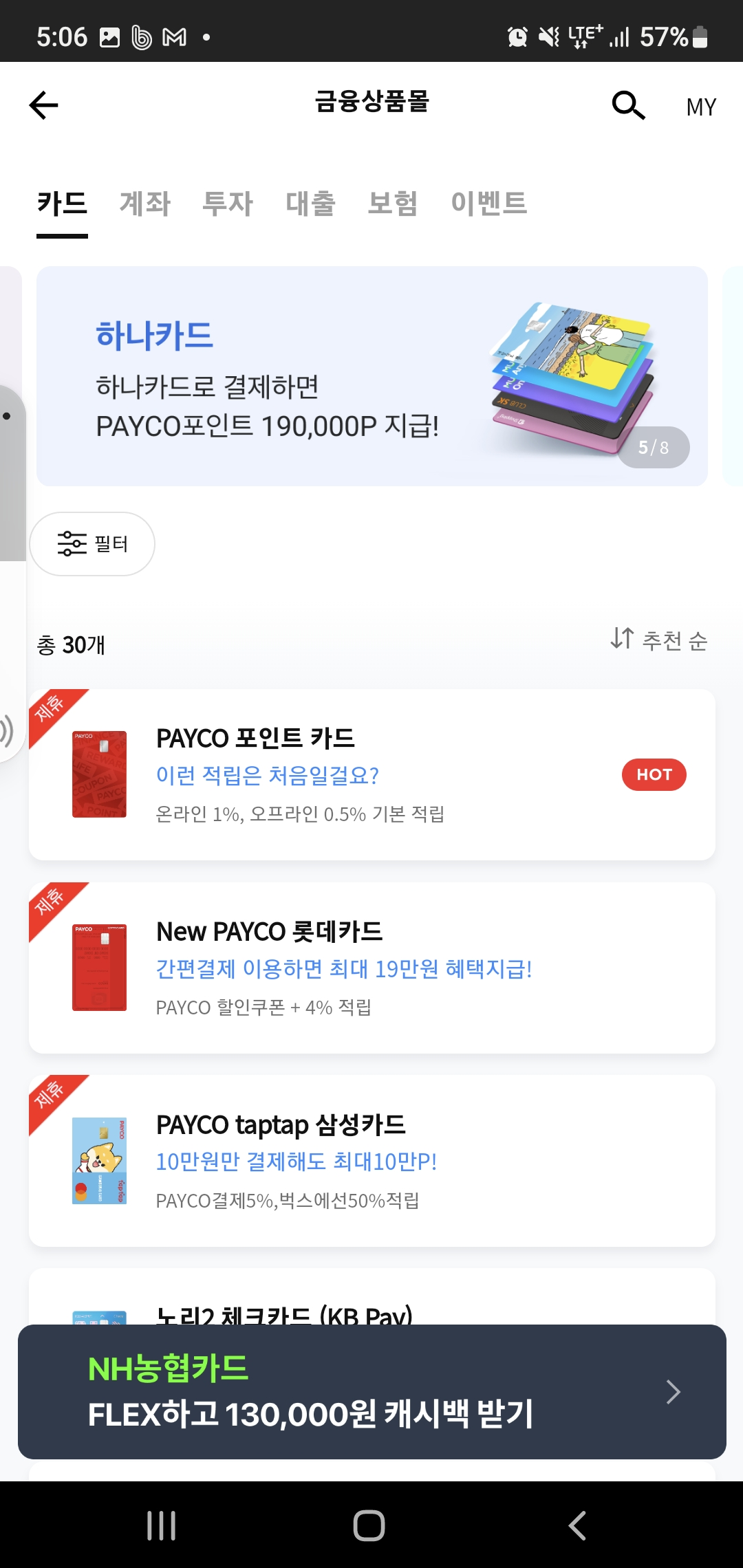 페이코 앱 > 하단에 '더보기' 탭 > 금융상품 > 카드