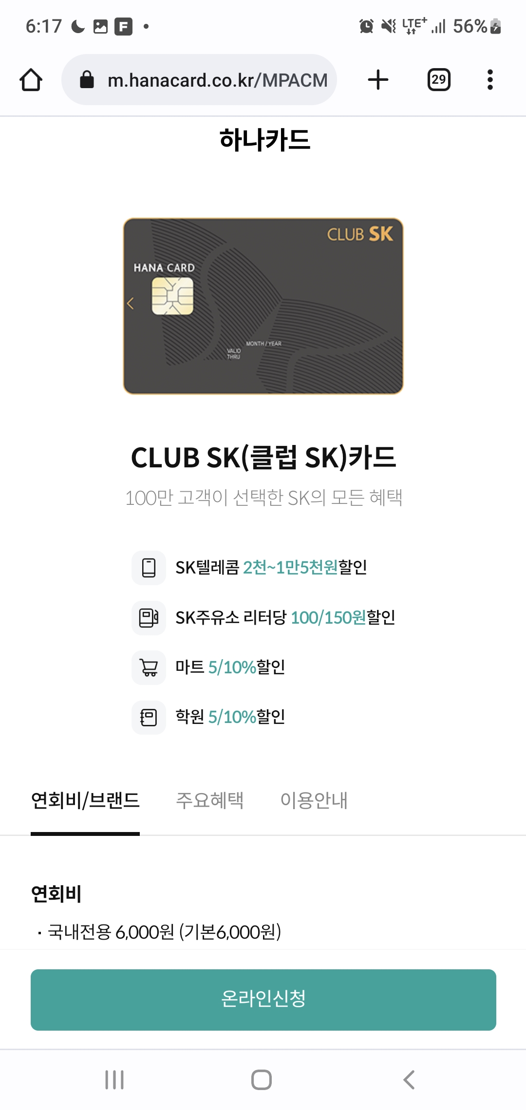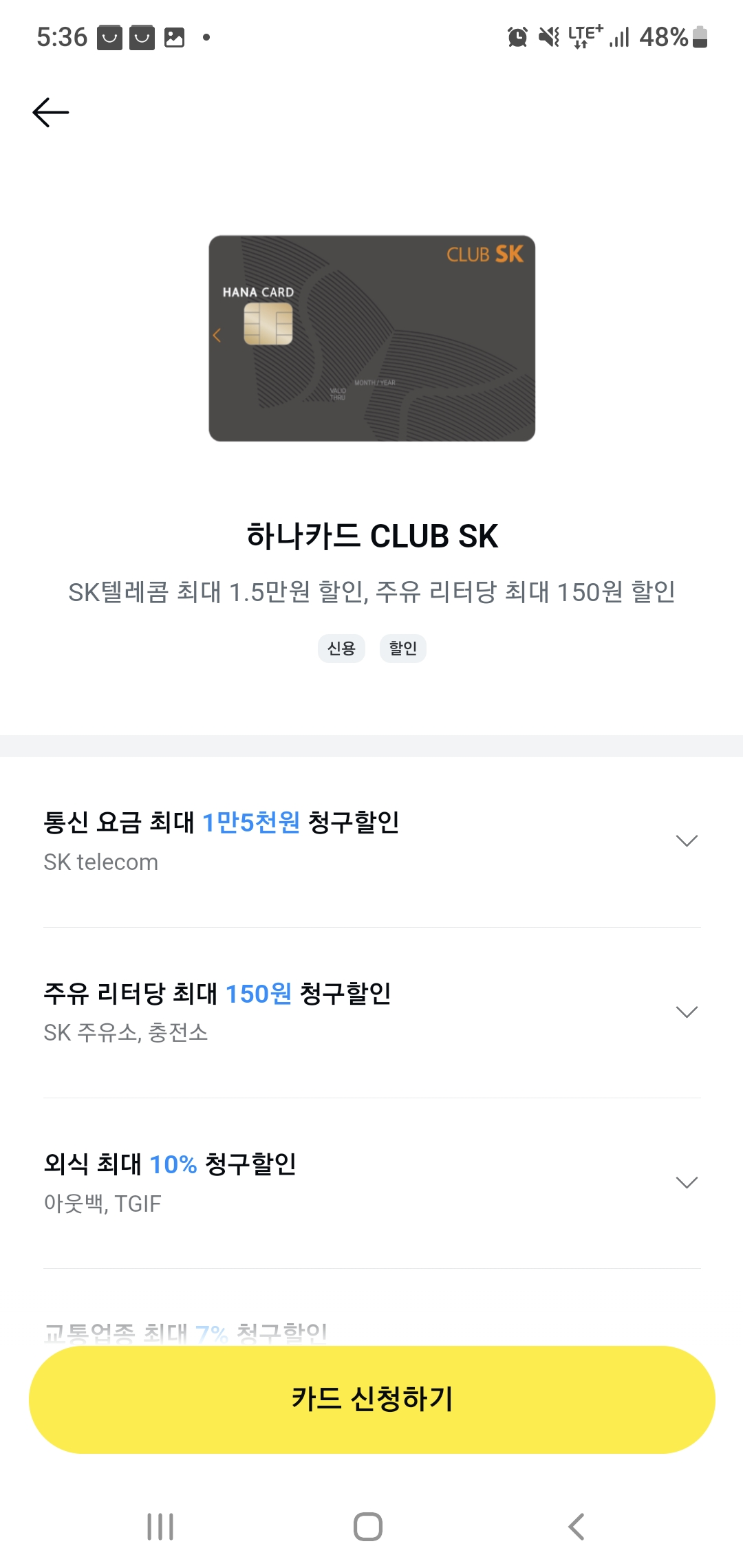 저는 이 중에서 가장 혜택이 많은 하나카드를 발급받아볼께요.